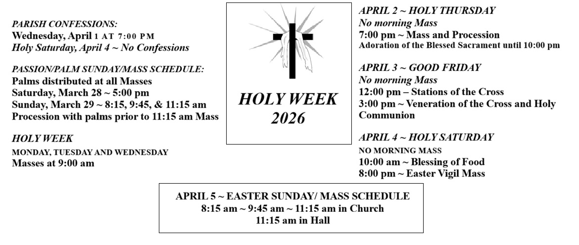9:00 a.m.(Daily Rosary and Chaplet after 9:00 a.m. Mass)