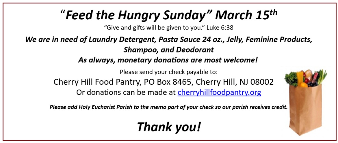 March 15, 2026 Feed the Hungry Sunday -