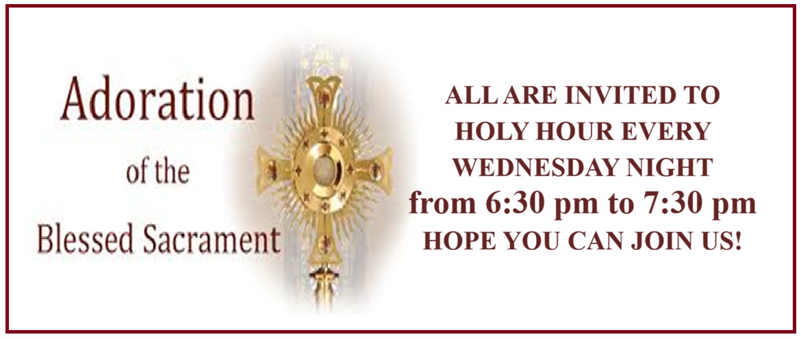 Holy Hour every Wednesday from 6:30 p.m. - 7:30 p.m.